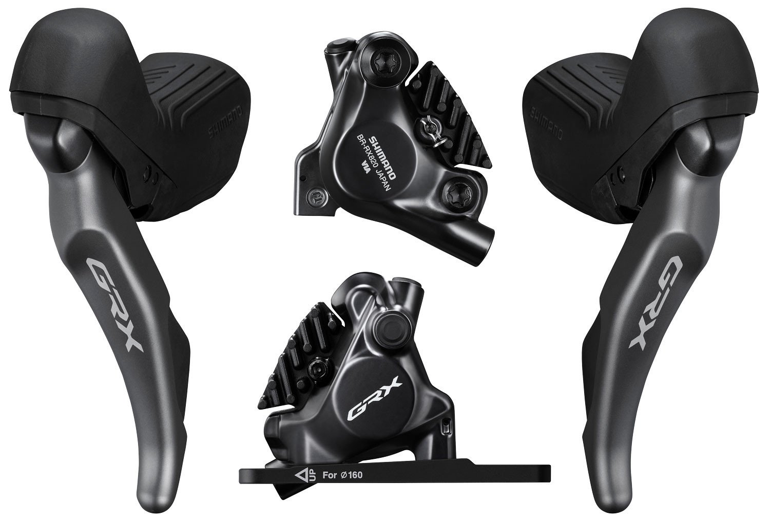 Juego de mandos de cambio y freno hidráulico 2×12 velocidades Shimano GRX RX8202 más pinzas incluidas.